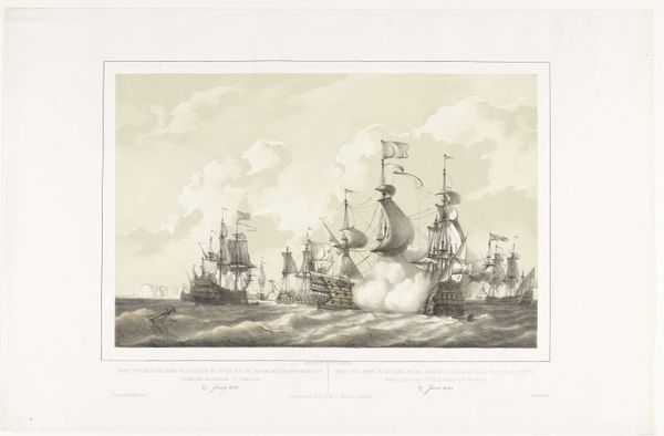 Johan Conrad Greive created this lithograph of the Fregat de Ruijter in the port of Antwerp in the 19th century. Greive was a Dutch artist known for his cityscapes and marine scenes, capturing the spirit of the Dutch maritime tradition. During this period, the Netherlands was consolidating its identity as a modern nation, proud of its naval history and commercial prowess. This cultural pride is palpable in Greive's detailed depiction of the ship, which seems to symbolize national strength. But, what about those who built and sailed these ships? What were their lives like? Who were they? The print invites us to consider the labor and lives of the sailors and workers, and what their roles were within this image of national pride. Greive’s composition makes us reflect on the relationship between national identity, labor, and the sea. The image becomes a window into the complex intersections of Dutch society.