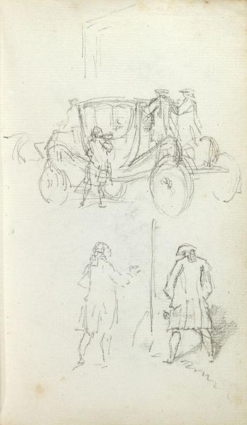 This is a sheet of pencil studies of figures and vehicles by Martinus Rørbye. We don't know the date, but he was active in Denmark in the first half of the 19th century. Rørbye trained at the Royal Danish Academy of Fine Arts, an institution which played a central role in defining the cultural identity of the nation at this time. The artist’s focus here is on capturing the daily life of middle-class Copenhageners. There are studies of carriages and carts alongside sketches of figures in conversation. The top hats and tailored coats worn by the men tell us that these were members of the bourgeoisie. These citizens were the beneficiaries of the economic growth that followed the Napoleonic wars and the growth of liberal institutions. The artist's concern with this class suggests an identification with their values. The historian might consult newspapers, diaries, and the records of institutions such as the Royal Danish Academy to understand the role that art played in the Denmark of this period.