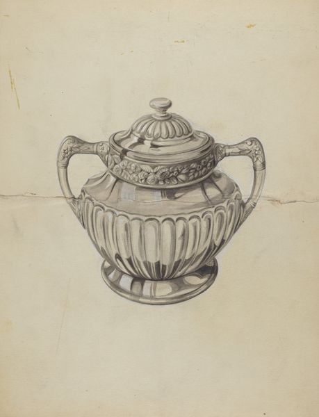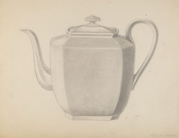Walter W. Jennings made this silver teapot drawing. We can read it as more than just a straightforward depiction of an object, it provides insights into the culture and society of its time. Looking closely, the meticulous detail and delicate shading suggest a society that valued refinement and craftsmanship. The teapot, a symbol of domesticity and social ritual, speaks to the importance of tea culture in many societies. Considering the context of Jennings’ life, his artistic choices likely reflect the values and norms of his social environment. To fully understand the image, one might consider the history of tea consumption, the role of silverware in social display, and the artistic conventions of the period in which Jennings lived. Research into historical records, museum collections, and archival materials would shed light on its cultural significance. Ultimately, our appreciation of this teapot drawing deepens as we recognize it as a product of its time, shaped by specific social and institutional forces.