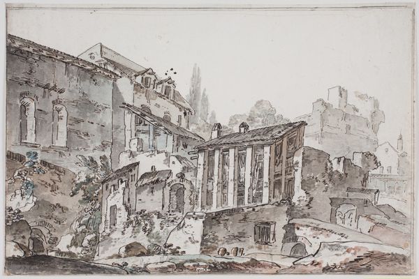 Editor: Here we have Augustin Coppens' "Bruxelles efter bombadementet i 1695", placing us somewhere between 1695 and 1795. The drawing uses ink and watercolor and depicts what appears to be a city in ruins. The scene is somber and the buildings seem fragile, almost ghostlike. How do you interpret this work, especially considering its historical context? Curator: It’s impossible to ignore the stark realities of power and its abuse embedded in this cityscape. Consider the socio-political climate of 17th-century Europe; Brussels was under siege, caught in the crossfire of larger power struggles. Coppens' choice to depict the aftermath invites us to reflect on the violence enacted on the city and its inhabitants. What does it mean to represent destruction, and who bears the consequences of such devastation? Editor: I hadn't thought about it as a form of witnessing. It's easy to see it just as an historical record, but there’s an emotional layer too. Curator: Precisely. And we can extend that. How does the act of creating such an image implicate the artist? Is Coppens merely documenting, or is he engaging in a form of political commentary? The Baroque style, often associated with grandeur, is subverted here, used to portray something quite the opposite. What do you make of that tension? Editor: I guess I see now how the technique can be a sort of counterpoint to the theme. Maybe it's about using a language of power to show its devastating impact on everyday lives. It's more than just aesthetics; it's about underlining injustice. Curator: Absolutely! It becomes a dialogue, a visual conversation between power, its consequences, and the role of the artist in portraying those realities. Editor: It's amazing how much is packed into what I initially just saw as a ruin. Thanks for untangling that for me. Curator: And thank you for helping to reveal it; engaging with art is never a solitary journey, and your questions made space for broader reflections.