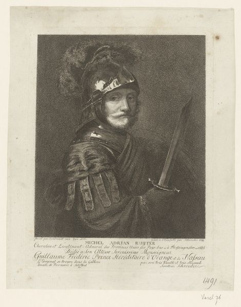 Editor: This engraving, “Young Man with a Beret with a Feather” by Christian Gottfried Schultze, was created in 1769. I’m really drawn to the detail in the face and the feathered beret—it’s incredibly delicate. How do you interpret this work? Curator: I'm particularly intrigued by the way Schultze reinterprets, rather than replicates, a recognizable image formula from Rembrandt. Consider the hat, the way light catches the subject's face and clothing: the imagery clearly wants to be associated with the earlier master. However, what do you think it means that the artist has chosen engraving, a reproducible image, and that the man looks almost… contemporary, not historical? Editor: That's interesting; so it is not so much about representing the young man as it is about him inhabiting a symbolic space? About conjuring ideas about this “Rembrandt” man? Curator: Exactly. Think about it this way: The "feather in the hat" motif isn't merely decorative. Feathers are age-old symbols across cultures, representing everything from status to spirituality. Its connection with male virility is pretty constant, wouldn't you agree? So the symbols in the portrait—itself an echo or reflection—construct the message. But to *whom* does this archetype of virility belong, do you think, when Schultze deliberately dates the image 100 years later than the purported "original"? Who possesses that legacy? Editor: I suppose it really makes you consider who controls and benefits from that legacy, especially considering the subject's stern, perhaps wary expression. It's fascinating to consider all those layers built into a seemingly simple image. Thanks for pointing those out! Curator: And thank you for exploring the echoes in this intriguing portrait with me! It serves as a reminder that images, like people, carry stories and memories.
