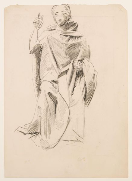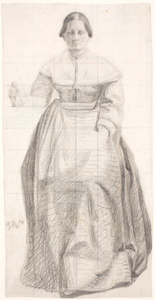 Editor: This is "Reading Girl," a pencil drawing by August Lucas, housed at the Städel Museum. It feels like a preliminary sketch, almost unfinished. What strikes me is how much detail is given to the folds of the skirt, contrasting with the vague form above. How do you interpret this work? Curator: Indeed. The incomplete nature highlights the process of artistic creation. Focusing on the skirt suggests Lucas was deeply engaged with representing volume and texture. Think about the 19th-century art academies and their emphasis on mastering classical drapery. Was Lucas perhaps practicing his skills within a system that privileged such representational abilities? Editor: That makes sense. So, it's possibly an exercise rather than a finished portrait? Curator: It is possible. Consider, too, how literacy and reading were increasingly important and symbolically charged themes at this time. The act of portraying a woman reading, even fragmentarily, participates in a broader cultural discourse about education and female intellectualism, doesn't it? The Städel’s location in Frankfurt adds another layer. How might Frankfurt’s literary and intellectual climate have shaped the artist’s choices? Editor: I hadn’t considered that. Viewing it in this context shifts the work from a simple study to a piece subtly engaged with social ideas around the value and representation of female readers. Curator: Precisely! The image participates, perhaps unconsciously, in larger socio-political debates about women, learning and artistic skill. Editor: So cool. It really opens your eyes to what is communicated! Thank you!