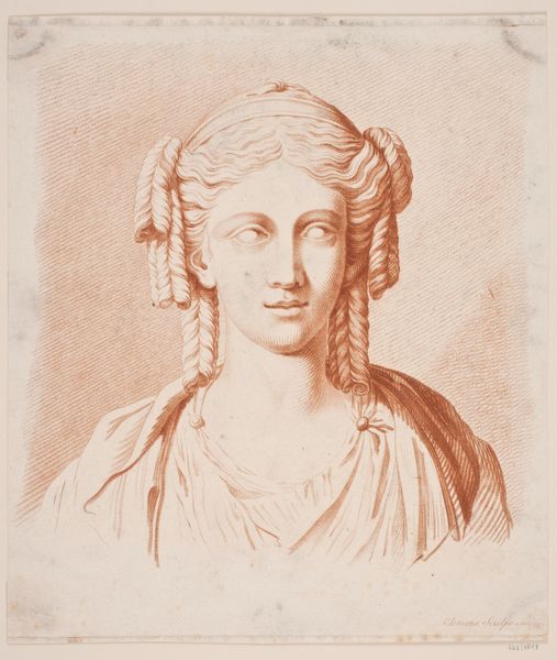 Giuseppe Longhi created this engraving titled "Bust of a Young Woman with a Turban" in the late 18th or early 19th century. At that time, turbans were a fashionable item, associated with exoticism and the Orient. Yet, their presence in Western portraiture also speaks to a history of cultural appropriation and the romanticization of the "other." Consider how this image participates in constructing ideas about beauty and identity. The woman’s gaze is direct, yet her expression remains ambiguous, inviting the viewer to project their own desires and interpretations onto her. The turban, while adding an element of the foreign, also serves to frame her face, drawing attention to her idealized features. Longhi's engraving captures the complexities of cultural exchange and representation, reminding us to critically examine the ways in which we perceive and portray one another. It prompts us to reflect on the power dynamics inherent in acts of looking and the stories we tell about ourselves and others.
