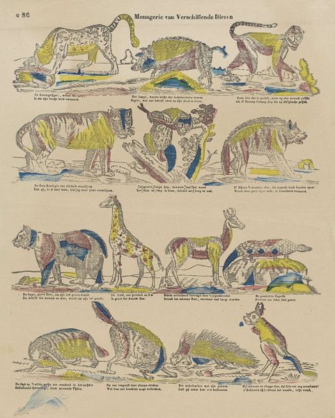 This print of fowl, *Pluimvee*, was created by Glenisson & Van Genechten using line engraving and chromolithography. These processes require the artist to plan the composition in layers, one for each color. The crispness of the engraved lines contrasts with the flat areas of color added later, influencing the appearance of the artwork. The method of chromolithography required the manual application of colors to a stone matrix, then transferred to paper using a press. This division of labor is typical of industrialized printmaking in the 19th century. The artist creates the initial design, but the actual printing would have been done by teams of skilled workers. The finished print thus embodies a tension: the naturalistic subject matter rendered with the precise, repeatable technology of industrialized image production. By understanding the means of production, we gain a deeper appreciation of the cultural context and the artist's role in this process.