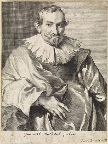 This is an undated portrait of Adriaen van Stalbemt by an anonymous artist. The drawing captures a man in a ruff collar, his hands gently clasped, rendered in sanguine on paper. The absence of information about the artist invites us to consider the power dynamics inherent in portraiture of this era. The sitter, Adriaen van Stalbemt, was a well-known painter; his identity and status were considered more significant than that of the person who sketched his likeness. What does it mean to be remembered, but to forget the hand that did the remembering? Consider how gender and class intersect here. We can imagine how, if the artist had been a woman, or someone of lower social standing, their name might easily have been lost to history. The drawing invites reflection on anonymity, and who gets to be remembered. It asks us to think about the countless unseen hands that contribute to our cultural heritage.