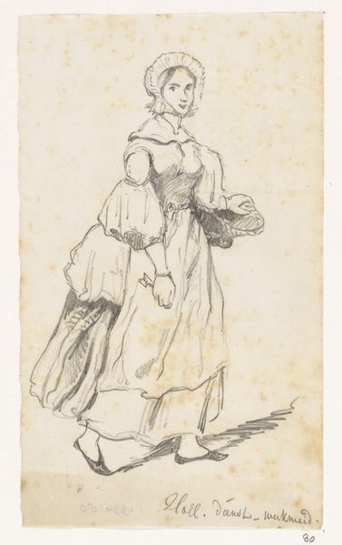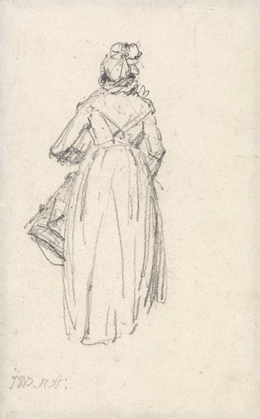 Wilhelm Marstrand rendered this drawing of an Italian woman seated on a chair, viewed from behind, using graphite, at an unknown date. The composition is dominated by the seated figure, whose dress flows in soft vertical folds to the bottom of the page, contrasting with the sharp angles of the chair. The artist’s use of line is particularly interesting; he employs light, almost ephemeral strokes to define the contours of the woman's clothing, giving it a sense of movement and volume, while darker lines create a corset to structure the figure’s form. Notice how Marstrand’s choice to depict the woman from behind disrupts traditional portraiture conventions. We are invited to contemplate her presence without the immediate connection of a facial expression, thus inviting a different kind of engagement—one that emphasizes form and posture over direct emotional communication. Through his attention to line and form, Marstrand not only captures a moment in time but also invites us to consider the ways in which the human form can communicate mood and identity independently of facial expression.