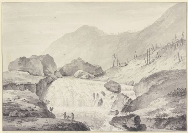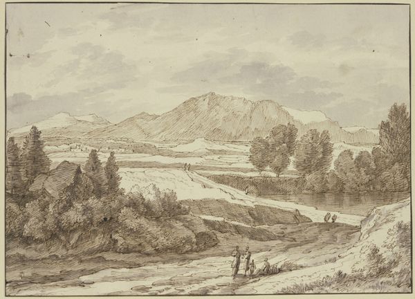 Jean Jacques de Boissieu created ‘Mount Cairo from across the Melfa River’ using pen and brown ink with gray wash on laid paper. These are traditional art materials, yet the way in which they are handled here speaks volumes. Notice the incredible detail achieved with simple tools. The artist uses the fluidity of ink to render the atmospheric perspective, capturing the misty distance and the reflections on the water. The strokes, seemingly casual, define the form of the mountain, the texture of the trees, and the movement of water. The layered washes create depth and shadow, while the precision of the pen defines the finer details. Boissieu's skill transforms humble materials into a window onto a landscape. This piece is a testament to the artist's craft, blurring the line between a simple sketch and a finished work of art. It reminds us that the value of a piece lies not only in its subject, but also in the labor, skill, and vision invested in its making.