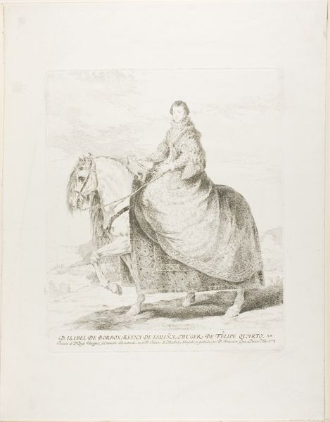Curator: Here we see a work titled *Portret van Helene van Mecklenburg-Schwerin te paard*, or *Portrait of Helene van Mecklenburg-Schwerin on Horseback*, which was created after 1811. It resides here at the Rijksmuseum. The artist is anonymous. It's made using pencil on toned paper. What strikes you about it? Editor: Well, there's a distinct feeling of power, isn’t there? It’s a soft drawing in a way, but the image of a woman on a rearing horse... It's imposing. Considering the societal constraints placed on women at this time, this representation is fairly subversive. Curator: Indeed. Equestrian portraits, particularly those of women, often carried symbolic weight. The horse represents not only status but also control, both literally and metaphorically. Think about how historical narratives have portrayed female leaders. Editor: Exactly! It's about displaying dominion, staking a claim to a type of authority otherwise forbidden. We need to consider, though, who commissioned this portrait and for what purpose. Was this an image designed to promote Helene, or something else? How would she have been perceived because of this type of imagery? Curator: The imagery here is very Romantic, echoing classical ideals. The swirling lines give the composition a strong dynamism. The use of toned paper enhances the subtleties of the light, adding to the drama. Even the landscape in the background appears to bow before her. Editor: That dynamism certainly complicates matters. While she presents this figure of aristocratic power, a kind of "freedom," that doesn’t necessarily mean emancipation for all women, or all people. It probably solidified class lines as well. Curator: Of course. We are seeing the embodiment of aristocratic privilege. This makes this anonymous artist and the portrait subject both rather fascinating in their potential social statements. The pencil sketch aesthetic suggests perhaps this was more for personal enjoyment. Editor: Yes, something more private, an exploration of identity in the domestic sphere perhaps? Either way, this piece offers us a fascinating glimpse into the performance of power, class, and gender at the time. Curator: Absolutely. And perhaps a small visual stone towards re-evaluation of symbolism itself.