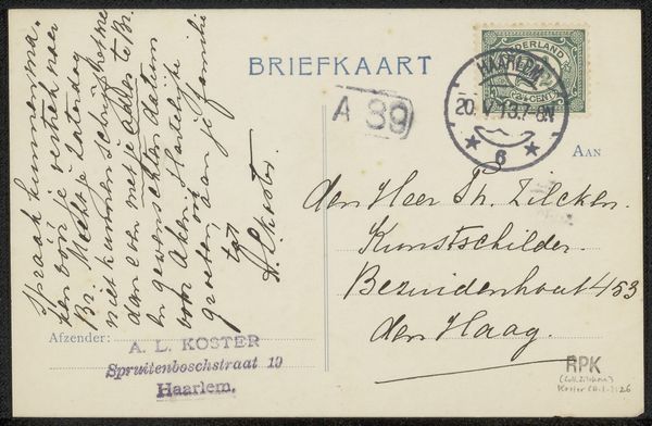 This is a postcard to Willem Bogtman by Richard Nicolaüs Roland Holst, and it's just covered in handwriting! It’s all about the gesture, this urgent, forward-leaning script, a real record of the process of communication. There is an intimacy here, it’s like a whisper. It feels like you are intruding on something private, or like you just found something in the street. The marks have been made with a delicate hand, maybe a fountain pen, with the ink sitting ever so slightly on the surface of the paper. Look at the variety of the individual letterforms, the way they swell and contract, their rhythm. Notice the address at the bottom, the way it's underlined with a decisive stroke. The text itself is a world of its own, but it reminds me of Cy Twombly, who made work that was also essentially handwriting, blown up to a monumental scale. Both artists share a love of line, surface, and the beauty of something made by hand. It's a reminder that art doesn't always have to shout to be heard; sometimes, the quietest voices carry the furthest.