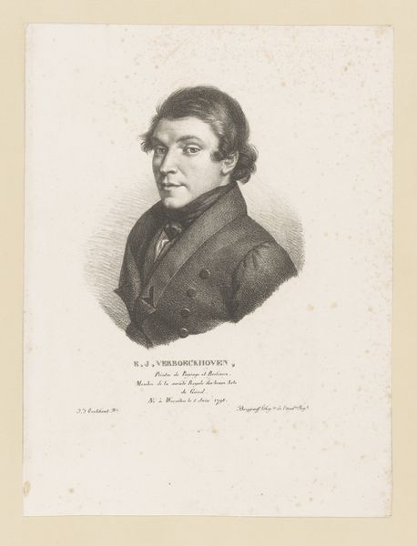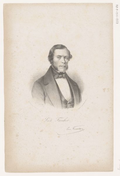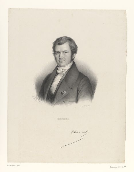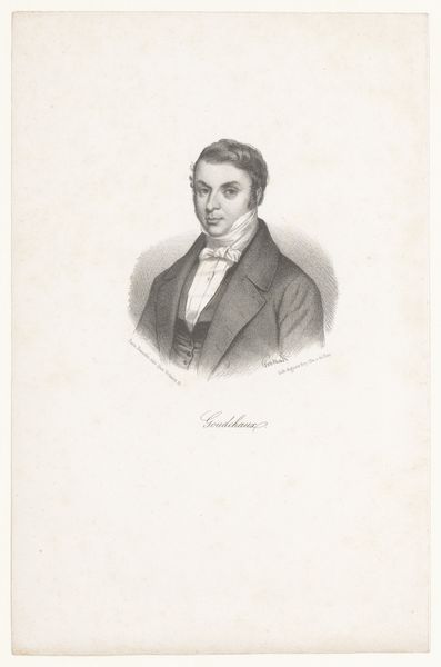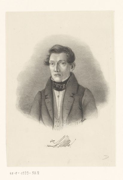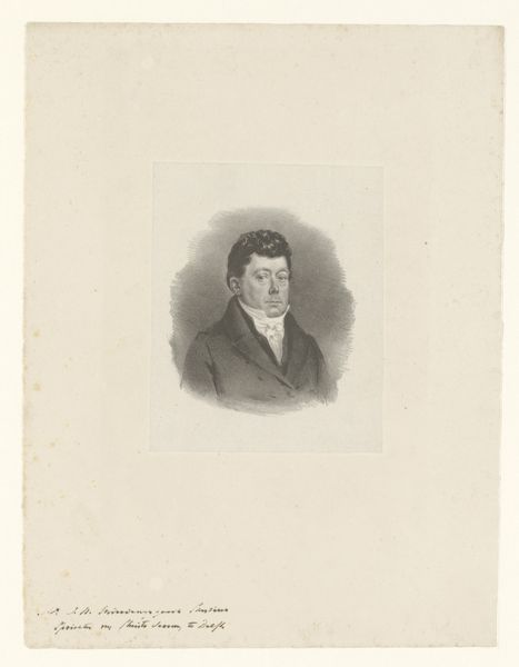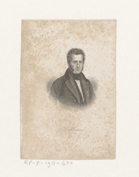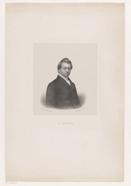 Curator: Welcome. Here we have Jules Hébert’s “Portret van Alexandre Vinet,” created in 1846. It's an engraving, a print made during the Neoclassical movement. What’s your first reaction to this piece? Editor: Austere, yet intimate. The precision of the engraving lends a formal quality, but the gaze of the subject is very direct, creating a feeling of immediacy. Curator: Precisely. Note the strong, clear lines defining Vinet's face, juxtaposed against the softer rendering of his clothing. Hébert’s technique skillfully uses contrast to emphasize Vinet’s intellectual presence. The details really draw your eye into his face. Editor: I’m intrigued by Vinet himself. Alexandre Vinet was a Swiss theologian and literary critic. Placing this portrait in the context of the religious and intellectual debates of the 19th century reveals a statement about the importance of thinkers like Vinet. How might the artwork itself play into representing him at the time? Curator: It elevates him. The print’s linear precision and balanced composition speak to Neoclassical ideals of order and reason. This positions Vinet as an embodiment of enlightenment thinking. Also consider how printmaking democratized access to imagery, making portraits like these significant for disseminating influence and ideas. Editor: I agree. And by presenting him within this established visual language, Hébert amplifies Vinet’s impact beyond religious circles into a wider intellectual sphere. He wasn’t just a theologian. He was helping to shape how we understood culture at the time. Curator: Indeed, the interplay of light and shadow emphasizes not just his features, but a certain intensity. Consider also how his eyeglasses reflect a scholarly focus, creating a lens – both literally and figuratively – through which we perceive his intellectual depth. Editor: The image offers a sense of history, connecting 19th-century thought to current discourse. We, today, grapple with how individual identities contribute to shifting intellectual and social structures. Hébert and Vinet spark our current conversations. Curator: Well observed. I've found a newfound appreciation, too. Editor: Me as well!