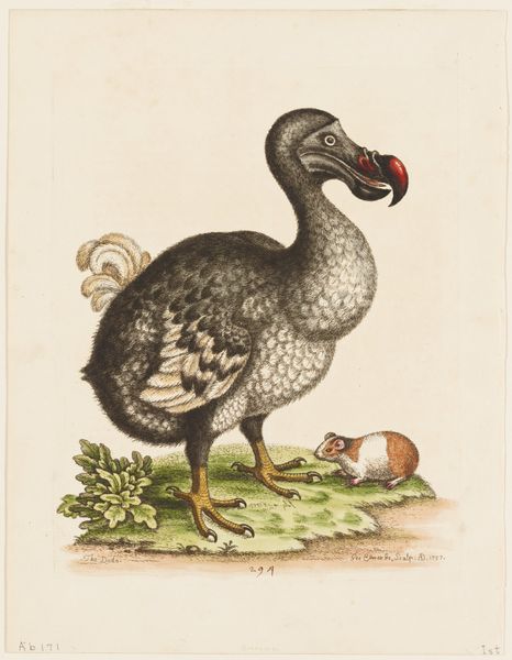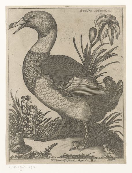 Editor: This is "Guinea Hen," an engraving and woodcut print by Thomas Bewick, around 1800. The texture is incredible, especially with the tiny dots and the strong lines defining the bird's form. I’m curious to know: what aspects of its composition stand out to you? Curator: I'm drawn to the meticulous control of line. Observe how the density and direction of hatching define the Guinea Hen's volume and texture. Do you notice how the seemingly simple subject matter is elevated by the precision of technique? Editor: Yes, it's fascinating how he achieves such a lifelike quality with simple lines. Is there a symbolic importance to this kind of engraving in the late 18th century? Curator: Its relevance lies not just in symbolism, but in its accessibility and replicability. Prints democratized art. Consider how the artist employs the visual language of natural history illustration. The focus is less on emotional expression and more on factual representation, although, a close reading also points out the skillful execution, highlighting the artist’s mastery and conceptual rigour. What do you think of this method? Editor: I appreciate your view on accessibility, but I think this method runs the risk of artistic license overpowering true objectivity. Curator: A fair assessment. Let's think more closely, though: isn't there an inherent subjectivity, even in attempting pure objectivity? The artist chooses what to depict, and how. Even here, Bewick’s technique transforms the bird into more than just a subject, into an aesthetic exploration. Editor: That’s a thought-provoking point, thank you. It reframes how I consider realism in prints, acknowledging the artist’s intervention through technical skill. Curator: Indeed, it reveals how close observation and artistry intertwine. This analysis underscores that even apparent neutrality carries an imprint of aesthetic choices.