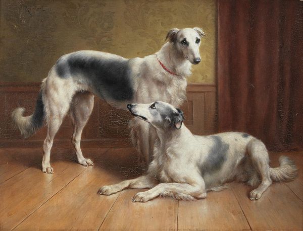 Jean-Baptiste Oudry made ‘Harriers (Four Hounds)’ using oil paint, a very traditional artistic medium. The smooth surface of the painting results from the layering of thin glazes of oil paint. Oudry’s technique displays remarkable control and precision, evident in the realistic depiction of the dogs' fur, their anatomy, and the surrounding foliage. Oil painting allowed for detailed rendering and subtle gradations of color, capturing the hounds' alertness and readiness. This high level of craft demonstrates the value placed on academic skill in 18th century French art. Beyond technique, the painting points to the context of aristocratic life and hunting culture, where hounds like these were status symbols, and hunting a favored pastime. The very act of Oudry creating such a refined piece speaks to the patronage system of the time, where artists depended on the upper classes for their livelihoods. Considering the materials and social context, we can appreciate how intertwined art, craft, and class were during this period.