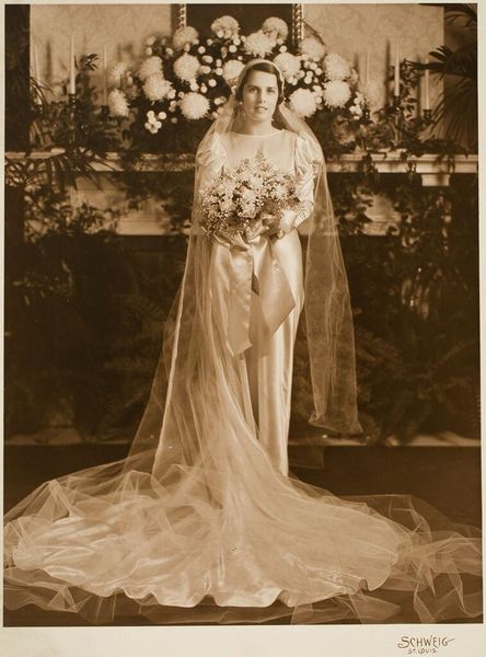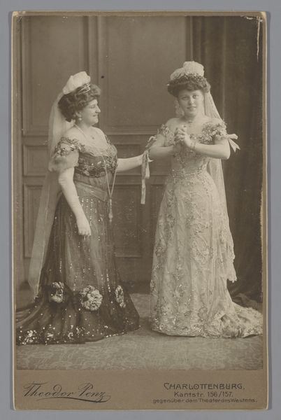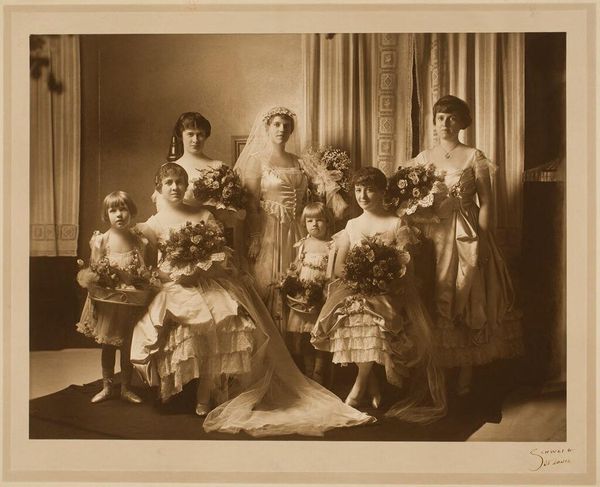 Editor: This silver gelatin print, "Untitled (bride and bridesmaid)" by Martin Schweig, has a certain timeless quality. What’s striking is the staging of the women—almost like they're on display. What do you see in this piece? Curator: I see a constructed image, deeply embedded in the social rituals of marriage. The women's posed formality reflects the societal expectations and the public performance of their roles. Consider how photography, at this time, reinforced specific ideals of femininity and status through such portraiture. Editor: So it's less about the individuals and more about the roles they represent? Curator: Precisely. How does the image's circulation then affect public perceptions of marriage and womanhood? Editor: I never thought about how the image itself plays a role. Curator: Indeed, it's about understanding the photograph not just as a record but as an active participant in shaping culture.