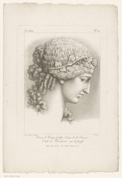 Editor: Here we have Louis Charles Ruotte's "Buste van Juno, en profil gezien," an engraving dating between 1764 and 1806. I’m immediately struck by the clean, precise lines, which create a sense of classical serenity. What do you see in this piece? Curator: Formally, the work excels in its rendering of line and the interplay between positive and negative space to delineate form. The precision in replicating the curvature of the subject's features suggests a study in idealised beauty, aligned with Neoclassical principles. Note how light and shadow are not heavily contrasted; the work favours balanced tones to enhance volume through careful gradation. Editor: That's a very interesting point about balanced tones; I hadn't considered how that contributes to the sense of calm. Is there something beyond technical artistry that resonates with you? Curator: My appreciation primarily lies in the structural integrity and skillful execution evident in this engraving. Consider the controlled, meticulous linework – it demonstrates command over the medium itself. The work doesn't seek to elicit a visceral reaction, but instead invites thoughtful observation of its aesthetic arrangement and formal resolution. Does focusing on these intrinsic formal elements change your initial perspective? Editor: Yes, definitely. Looking closely at the formal qualities helps me move past just seeing a "pretty picture" and appreciate the technical skill involved. I'll look at engravings differently now. Curator: Indeed. Observing the inherent formal components of the artwork illuminates its meaning and artistry. Every viewing offers new perspectives.