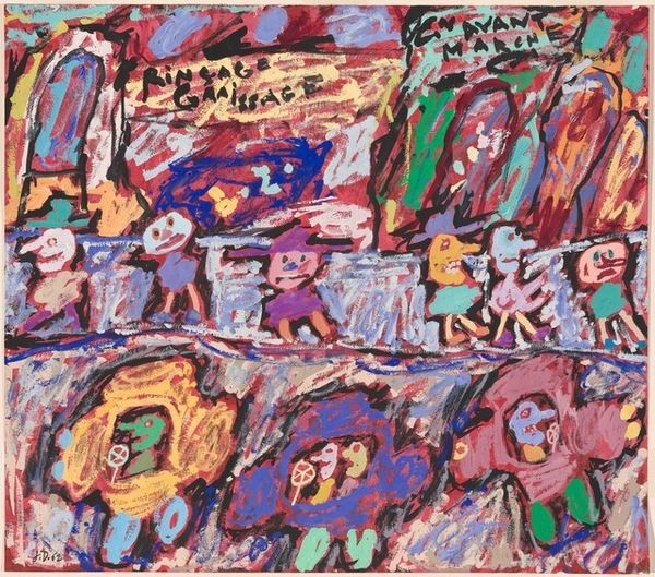Edvard Munch created this unnamed work with crayon on paper at an unknown date. Munch, who lived through immense social change, frequently reflected his emotional and psychological struggles through art. Although this piece is unnamed and undated, the figures and forms within this composition convey a sense of alienation and disquiet, feelings for which Munch is well known. The use of color and line to imply form, rather than define it, further enhances the dream-like, uneasy feeling of the piece. The figures in their varied attire could be read as representative of the diverse social strata of late 19th and early 20th century Europe. Munch developed alternative narratives through abstraction that moved away from traditional representation. Instead, he focused on conveying emotional and psychological states. He captures the spirit of a society in transition, marked by both promise and uncertainty. This piece leaves us to ponder the silent anxieties present in crowds.