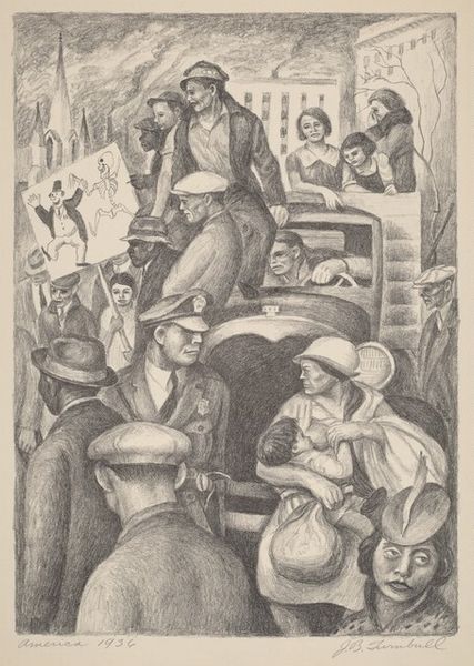 Curator: This anonymous print, titled "Home from the War," shows a scene of reunions, a chaotic, hopeful arrival after unimaginable loss. The medium looks like wood engraving, which would allow for mass production in newspapers. Editor: It feels so tender, doesn’t it? The way the figures embrace, that sense of relief and pent-up emotion… yet the scratchy lines of the engraving also convey a sense of unease, a lingering trauma, perhaps? Curator: Absolutely. Consider the context. The Civil War tore families and the nation apart. Images like this, published in periodicals, were vital in shaping public opinion and documenting the human cost. Did the image tell the truth, or tell a story the paper wanted to tell? Editor: And it speaks to the complicated legacy of that war. The promise of equality, versus the harsh realities of Reconstruction and the ongoing struggles for Black liberation, all caught in these reunions. You know, there is an energy here that evokes both profound happiness and deep sorrow at the same time. It’s quite moving. Curator: Indeed. This small print holds within it a multitude of stories, whispers of a nation grappling with its past and uncertain future.