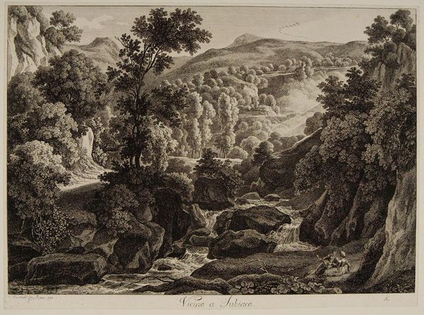 Curator: This is Joseph Anton Koch's "S. Francesco in Civitella." The scene, captured in ink, evokes a sense of serene isolation. Editor: Yes, the stark lines create an almost austere feeling, yet the composition is remarkably balanced. Curator: Koch, of course, was part of a generation grappling with new forms of piety and the changing role of religious institutions. This piece may be seen as nostalgic. Editor: Look at how Koch employs cross-hatching to define form. The interplay between light and shadow is really striking. It lends depth to the scene, doesn't it? Curator: Indeed, and that speaks to the changing landscape of faith in the face of Enlightenment ideals. Editor: It is a powerful contrast, that delicate technique portraying such a substantial and culturally meaningful place. Curator: Koch encourages us to reflect on that place and time. Editor: Absolutely; the artist's skill really amplifies that quiet invitation.