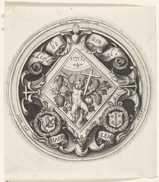 This is Johann Theodor de Bry’s design for a heart-shaped brooch, an etching of great delicacy. The heart, of course, is the dominant symbol. It is universally understood as the seat of emotions, especially love. But here, encircled in the heart's ornate frame, is an intimate scene of lovers entwined in an embrace. This erotic pairing is a scene that echoes through time, recurring in varied forms from ancient Roman frescoes to Renaissance paintings. One can think of Titian’s treatment of the subject, echoing in form but differing in tone. The heart itself, pierced by arrows and adorned with floral motifs, speaks to the complex dance of desire and vulnerability. It is a symbol that has evolved. From its ancient associations with courage and vitality to its modern, sentimental connotations, the heart motif's enduring presence attests to our persistent fascination with love's mysteries. This design engages viewers on a deep, subconscious level. It reminds us of the powerful, cyclical nature of these symbols, how they resurface, evolve, and take on new meanings, reflecting the ever-changing landscape of human experience.