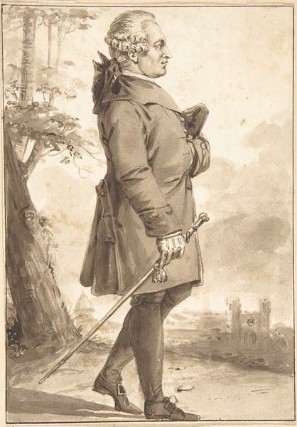 This portrait of Charles Bonnet was drawn by Jean-Baptiste-François Bosio with pen and brown ink, and brown wash over graphite. The artist’s choice of materials gives the work a soft, delicate feel; the washes blend together like watercolor, and the ink lines are crisp. Yet there’s also a sense of labor involved in the making of this artwork. The graphite underdrawing suggests a careful planning, and then a painstaking outlining in ink. Bosio has built up the figure of Bonnet with repeated strokes, creating shadows and depth. This is not an industrial process, it is a slow, manual one. There is a direct contrast between the soft washes of the background and the sharp lines of the portrait. Bosio asks us to recognize both the specificity of the man, Bonnet, and the beauty of the natural world around him. Ultimately, we recognize that this is a crafted object, an idea shaped through skilled labor. It makes us reconsider what "art" can be when it is rooted in material and process.