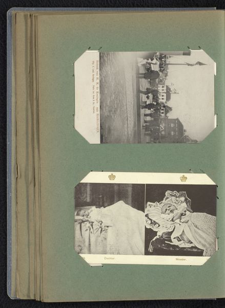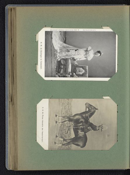 These two postcards of the royal crib and Queen Wilhelmina, probably made with silver gelatin prints, feel like a muted conversation about visibility and power. The sepia tones lend a certain weight, almost like a faded memory. Looking at the image of Wilhelmina, you can almost feel the starchiness of her dress, the weight of the crown. The texture is smooth, almost cool to the touch. Everything looks so precise, but when I look at the way the paper is aged and how they're stuck onto the page, I can't help but see the human hand. It reminds me of those early portrait painters, like Holbein, but the lack of color flattens it somehow, making it a document more than a drama. Think about how the stiff formality of court portraiture is almost mocked by the ease of photography. Like Manet or Degas, this photographer uses a new medium to poke fun at old hierarchies.