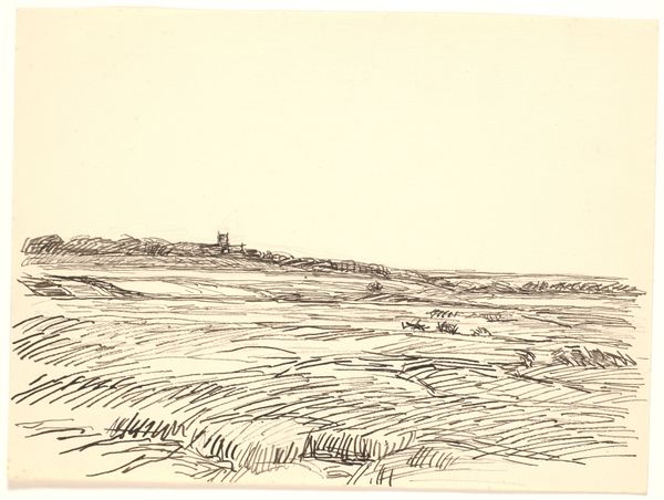 Curator: Before us is a drawing by Hans Smidth, titled "Studieblad med tre landskaber fra jylland," or "Study Sheet with Three Landscapes from Jutland," dating back to the 1880s. It's rendered in pencil. Editor: My initial response is one of quiet observation. The monochromatic palette lends itself to stillness, but the tiered composition injects this work with some dynamism. There’s something very serene, very contemplative about it. Curator: Precisely. Smidth, active during a pivotal period for Danish art, frequently depicted rural life. Consider how these seemingly simple landscapes speak to broader cultural shifts of the time, a rising interest in rural themes and romanticism, a form of Realism that looks outside urban development to something perhaps a little lost. Editor: And the rendering of these three distinct landscapes allows for a fascinating exploration of perspective and composition. Each landscape uses varied placement of land forms that serve as foreground, midground and background elements that define their space. Look, too, at the pencil work—it’s incredibly detailed, achieving varied textures and light simply through line work. Semiotically, the marks are relatively uniform, however; meaning lies in the relation between their quantity and position. Curator: Furthermore, look at what he chose to depict. The plow field in the top sketch may very well address concerns about agriculture within Jutland. Similarly, the building atop the land mass could reflect the impact architecture and urbanization had at this time. Editor: But there's a timelessness, too. Roads are often depicted as paths to civilization, yet that winding road appears relatively isolated; civilization exists on the sidelines. Each plane in Smidth’s arrangement could represent an age or layer of culture in the same location—suggesting perhaps our contemporary obsession with "urbanization" may eventually regress again toward a more natural, isolated place. Curator: That offers an interesting vantage. Ultimately, viewing art through a strictly formal or purely historical lens becomes far less helpful if we never synthesize to consider how both interact. This composition gives me the chance to observe how visual and historical interpretation can coincide in something as subtle as line and value. Editor: Indeed, appreciating Smidth's study lies not only in acknowledging historical contexts but also appreciating its enduring qualities as a meticulously crafted composition. This piece resonates even now.