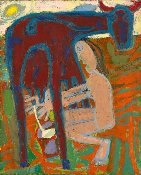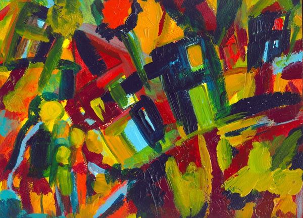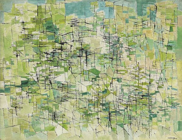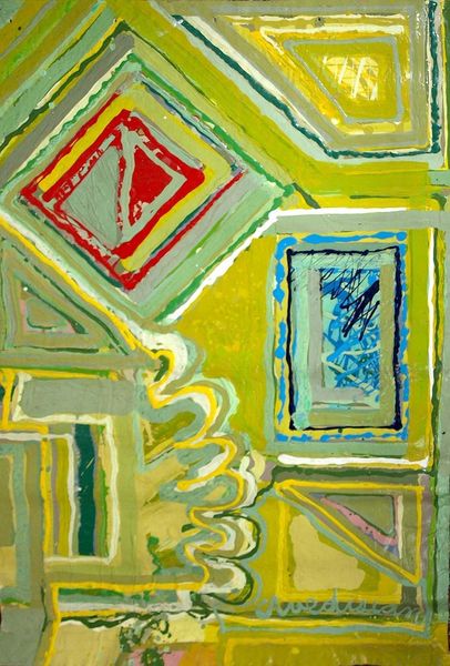 Edward Avedisian made this painting, Untitled [yellow and green], and it's a process of seeing and feeling through color. There's an immediacy and energy, like he's chasing something, or maybe being chased. Look at the surface, you can almost feel the push and pull of the brush. The paint isn’t too thick, but it’s there, a record of each stroke. There's a great big circle in the top right, yellow on green on yellow, with pale grey. It's not quite centered, and feels more like a target. Avedisian reminds me a little of Elizabeth Murray, not in the way the paintings look, but in the restless energy. Both artists help us embrace art’s open-endedness.