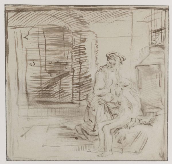 Editor: Here we have Nicolai Abildgaard's sketch, "Udkast til billedet af Homér," dating somewhere between 1743 and 1809. It's a pencil and graphite drawing, and the loose lines give it this ephemeral, almost dreamlike quality. What jumps out at you when you look at it? Curator: Ah, yes, Abildgaard's Homer. For me, it's the *feeling* it evokes. Think about the weight of history bearing down on this poor, perhaps imagined, old poet. He strums his lyre, but I wonder if he's really creating, or just… remembering? Look at how the lines tremble, searching for the form. Almost like Homer himself, blind, feeling his way through the darkness for the next verse. Does that resonate with you? Editor: Absolutely. There's a fragility to the sketch that mirrors the perceived frailty of old age. I can't help but feel a pang of empathy looking at him. It looks unfinished, I mean do you think this piece would be displayed in a gallery today without being considered a "finished piece"? Curator: Oh, undoubtedly! Because within its unfinished state lives its soul. Nowadays, we often embrace process over pristine perfection. This is not a painting with the "Mona Lisa"'s polish. I look at this artwork and imagine an echo of ancient myths, perhaps a story whispering itself onto paper. To ask a counter question: wouldn't we lose something profound if it were to be deemed "finished"? It gains a "what if..." element, it really begs the viewer to consider, am I wrong? Editor: That’s a compelling point. Maybe the sketch *is* the finished piece in this context. Curator: Perhaps every drawing has an origin that stays on that very sketch. Now *that* is worth celebrating, I would say! Editor: Thanks so much, this has helped me gain such a different outlook to this work of art!