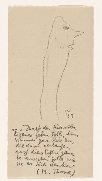Erich Wichmann drew "The New Generation That Is Coming" with graphite, probably in 1923. The smudgy marks and soft gradations give it this dreamy quality. It makes you feel like you're peering into someone's thoughts. There's something so compelling about the way the head just melts into the elongated neck and arm. It’s like the figure is lost in contemplation, almost dissolving into the background. See how the graphite is layered to create depth, but also how the paper shines through? This adds a sense of vulnerability. It's as if the artist is revealing a raw, unfiltered emotion. It reminds me a little of Odilon Redon's symbolist drawings, where figures emerge from hazy, undefined spaces. The ambiguity of the image is really what gets me. Is this a figure of hope or despair? It's this openness that makes the drawing so engaging.
