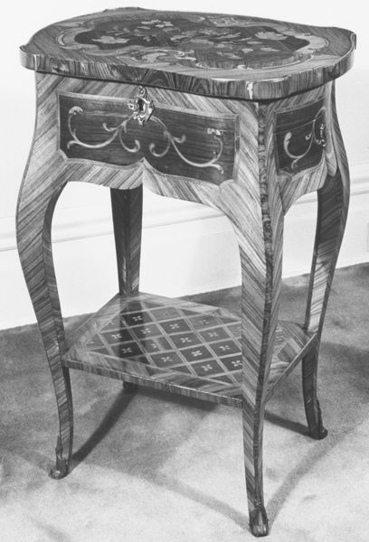 Curator: Here we have a wine cooler crafted between 1775 and 1795, now residing at The Met. The piece is attributed to Joseph Gegenbach, also known as Canabas. Editor: My immediate reaction is: elegant austerity. The form is so contained, almost severe despite those curvaceous legs, but the wood grain offers this warmth. Curator: The materials, metal and wood, play a crucial role, don't they? Consider the Rococo period, a time defined by aristocratic excess. Wine coolers like these served not only a functional purpose, but also reflected the wealth and refined tastes of their owners. This particular object provides insights into 18th-century European courtly life and culture. Editor: Exactly, and beyond simple opulence, I think we also glimpse shifting gender dynamics. Think about the rituals surrounding wine: who’s serving, who's being served? What are the implicit power structures at play? The deliberate curvature and detailing may reference contemporary feminized aesthetics of domestic space. Curator: The French Revolution casts a long shadow over these later Rococo pieces. Canabas was a cabinet maker, and like others serving the aristocracy, would have witnessed enormous societal upheaval. This likely would have influenced the creation, as well as its eventual perception in a world transformed by egalitarian ideals. It presents the political dimensions of the aesthetics. Editor: That shift in aesthetics, then, can tell us so much about a changed cultural landscape, about who holds the symbolic power in that landscape. This seemingly simple wine cooler offers such insight into issues of identity, class and even emerging democratic ideals. Curator: It's fascinating to consider how an object like this can become a time capsule, preserving fragments of societal attitudes and tensions long after its initial creation. Editor: Absolutely. The layers of social and cultural encoding here show just how much the aesthetic speaks in ways that are often deliberately overlooked.