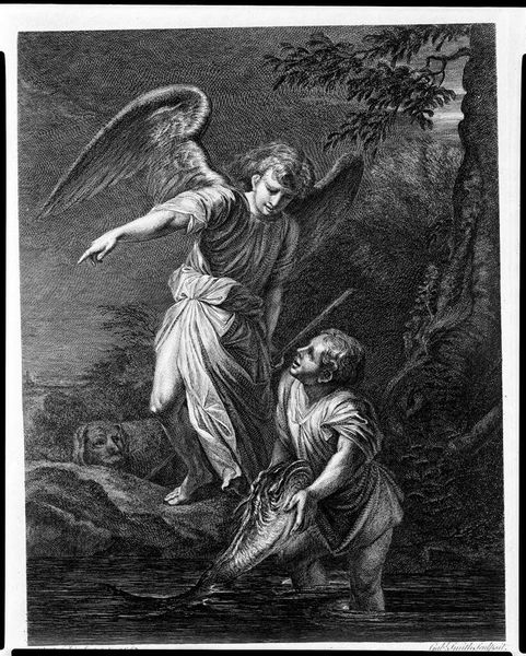 Editor: Pierre Daret’s "Holy Family" presents a classic scene, but with an intriguing twist. What strikes me is the angel offering something to the child, a palm perhaps? What do you make of that gesture? Curator: The palm branch is a powerful symbol, traditionally linked to triumph and victory. Its presence here alludes to Christ's future, foreshadowing his eventual sacrifice and resurrection. What other elements do you see carrying symbolic weight? Editor: Well, the cherubs floating above seem joyous, almost celebratory. Is that a typical element? Curator: Precisely. These angelic figures are frequently used to represent divine approval and grace. Their presence signals a heavenly endorsement of the Holy Family, reminding viewers of the sacred nature of the scene. It shows how continuity of cultural memory transcends time. Editor: I never thought of it that way. Thanks, that was really enlightening! Curator: My pleasure! I learned something, too.