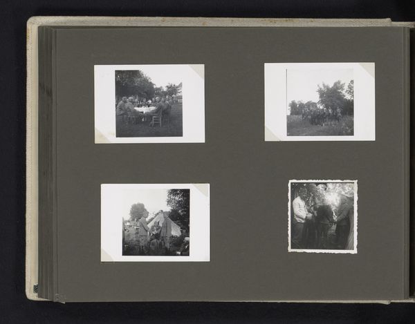 These black and white photographs, collectively titled 'Bezoek aan een dorp,' meaning ‘Visit to a village’ in Dutch, are mounted onto the dark page of an album. In their arrangement, I am reminded that art making is not just about the single image, but also about the relationships between images. Each photograph, a small window into a past encounter, appears as a carefully constructed moment frozen in time. The texture, inherent in the grainy black and white, lends a timeless quality, allowing us to reflect on the cultural exchange captured within. The focus feels directed, not just on the people, but on the act of documentation itself. Looking at the photograph with the figures kneeling in a circle, for me, the ambiguity is key: Who is the observer? What is the nature of this visit? This element of not-knowing is what makes it compelling. It reminds me a little of the work of Sophie Calle, who is good at opening up these types of interesting ambiguities around image making.