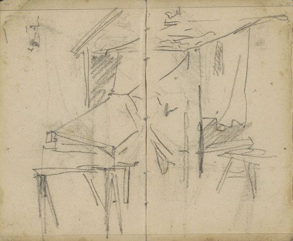 Curator: Here we have George Hendrik Breitner’s “Paardenstudies,” or “Studies of Horses,” a pencil drawing on paper dating from around 1881 to 1883. Editor: My first thought? Energy. It's a snapshot, raw and immediate, like catching a glimpse of something powerful just for a second. You can almost feel the twitching muscles. Curator: Absolutely. Breitner, though sometimes associated with the Dutch Golden Age and elements of Impressionism and Realism, he also foreshadows the Ashcan School’s focus on urban life and everyday subjects, which we definitely see glimpses of later in his work. And here, it's these fleeting moments. Editor: Right? Forget posed portraits. This is the real horse, probably stinking, breathing, pawing the ground. I love how economical his lines are. He suggests form more than defines it, which leaves room for my imagination to gallop away. Curator: These "studies" speak to a broader artistic interest in capturing movement and the ephemeral. Remember, this was also the era of Muybridge's motion studies with photography; that focus was circulating among many artists who sought to show motion through innovative representation of form. What makes it stand apart from photographs is it has feeling; Breitner wasn’t aiming for photographic accuracy; he sought to explore the essence of his subjects. Editor: I agree, it's feeling over fact. He captures something vital, the horse-ness of the horse! It's a little bit romantic and wistful to think what their days were filled with; I wonder if Breitner wondered too. What stories could they tell? Curator: The work serves as an insight into the artistic process as well; these were the initial forays into observing, drafting, and experimenting. You see the underpinnings, so to speak, before the eventual painting or a more formalized drawing takes shape. You gain such insight from witnessing the development and skill that great masters go through, and witness where artistic brilliance takes root! Editor: Yeah, it's like looking at a musician's practice scales versus hearing the full symphony. There is so much inherent value and raw talent in this little practice. What is evident for me, in particular, is that drawing feels so elemental and basic as a beginning point for the artist; but at the same time, even raw drawing is inherently complex in so many ways! Curator: Very true! Breitner’s work offers such unique insight in those dualities. Editor: Yes, such a wonderful drawing! Thanks for providing context on it.