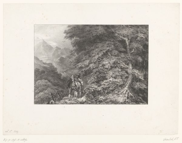 Curator: So, we’re looking at Alexandre Calame’s "Berglandschap met bomen en beek", a mountain landscape rendered in pencil sometime between 1852 and 1855. What strikes you first about it? Editor: The stark contrast—a whole scene built with the simple means of light and dark pencil work. There's a lot of visual weight for something so delicately crafted. Curator: It's fascinating how Calame situates himself, and us, in relation to nature. Romanticism often grappled with ideas of the sublime, with the awesome and terrifying power of nature laid bare. The role of pencil drawing here is interesting; a tool which, due to industrial advancements was becoming more accessible. Editor: Exactly. Pencil drawings like these democratized landscape art. You didn't need to be an oil painter to capture nature's essence; the pencil and paper sufficed. Curator: It invites consideration around themes of labor, accessibility, and the means through which art production can both enable and reflect wider socio-economic and cultural changes. And to consider art production's legacy. The work certainly echoes with echoes of past engravers like Dürer. Editor: Absolutely. There’s almost a printed quality. But at the same time, you feel the hand of the artist so directly; you understand how Calame might have spent hours refining tonal relationships. The raw, unfinished quality is particularly appealing here. Curator: Indeed, it pushes us to think about the concept of "finish," and what labor contributes to it, even the labor of imagination that informs material decisions. Considering this image within wider visual culture—where it stands alongside concurrent approaches to landscape and drawing that span from naturalist documentation to overtly political statements about land and environment feels valuable here. Editor: Ultimately it underscores the importance of both the artist's vision and the materials used to make this kind of beauty accessible. Curator: Agreed. I've gained a greater appreciation for the layers of social significance enmeshed within what appears, at first glance, as simply a mountain scene. Editor: And I am reminded of the tangible effort—the hours invested and material impact represented. Thanks for exploring this artwork together!