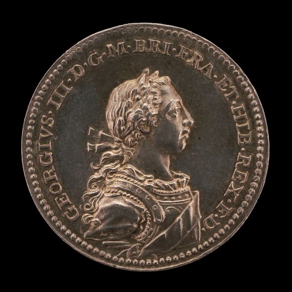 Editor: Here we have Johann Lorenz Natter’s silver medal, "Coronation of Queen Charlotte," created in 1761. The profile portrait is so formal, and almost serene. What stands out to you in this piece? Curator: For me, it's about how this small object participated in constructing and disseminating a specific image of Queen Charlotte at a crucial moment, her coronation. Consider the power dynamics inherent in commissioning and distributing these medals. Who controlled that narrative? Editor: So, it's more than just a portrait; it's a piece of political communication? Curator: Absolutely. Look at the Neoclassical style. The deliberate references to Roman portraiture wasn’t just about aesthetics. It invoked ideals of power and virtue, drawing a parallel between Charlotte and powerful rulers of the past. Do you see the inscription encircling her? Editor: Yes, it's an abbreviation I don't quite recognize, but surrounds the portrait almost like a halo. Curator: Exactly, and think about where these medals ended up: in the hands of dignitaries, collectors, perhaps even the general public. Each impression reinforces that carefully curated image. How effective do you think it was? Editor: I suppose seeing her represented in this way everywhere could solidify her image, though it feels a little impersonal and manufactured. It's fascinating how art, even in this small format, can be used as a tool for shaping public perception. Curator: Precisely. And studying it makes us more conscious of those image-making processes that continue to this day. What do you take away? Editor: I never considered the political implications of something so small and seemingly celebratory! I’ll definitely pay more attention to how power influences artistic creation and distribution. Thank you.