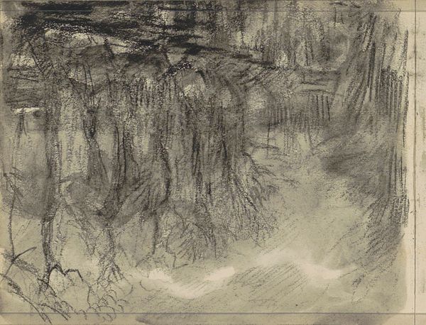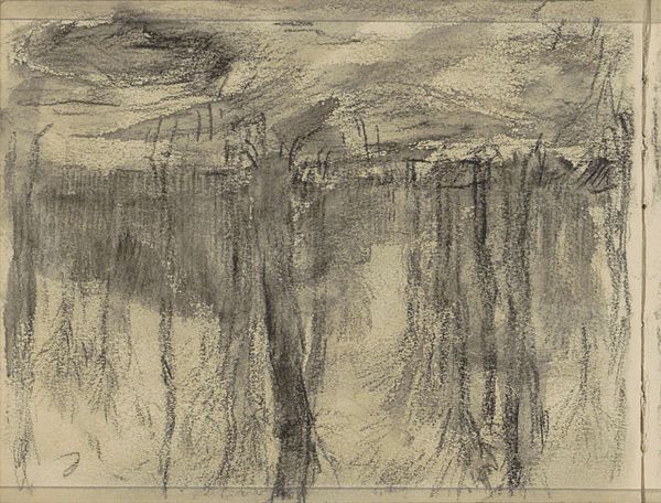 Johan Antonie de Jonge made this landscape drawing with charcoal, and you can really sense the way he worked the material. He wasn't afraid to get his hands dirty, you know? The smudgy blacks and grays, they're like a moody whisper. Look closely, and you can almost feel the grit of the charcoal on the paper. See how he's built up the texture in the sky with these layered, scribbly marks? It's like he's trying to capture the feeling of a storm brewing. There's one spot in the lower right corner where the charcoal is really thick, almost like a little pile of dust. That little patch, it kind of grounds the whole scene for me. De Jonge reminds me a bit of Corot, but with a darker edge. It's like he's inviting us to get lost in the landscape, but also warning us that it might not be so peaceful after all.