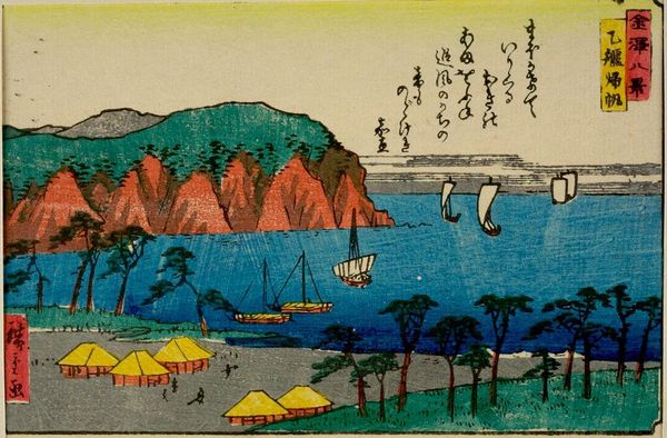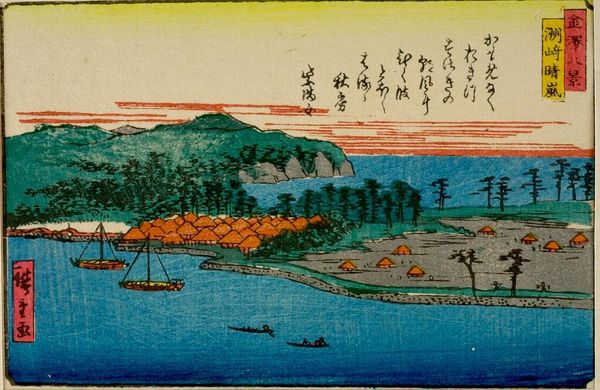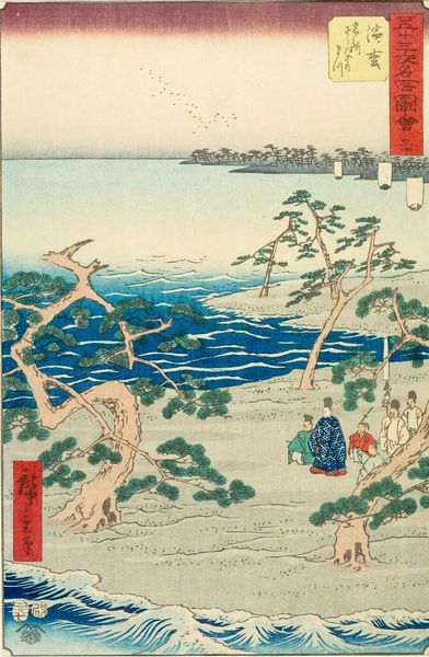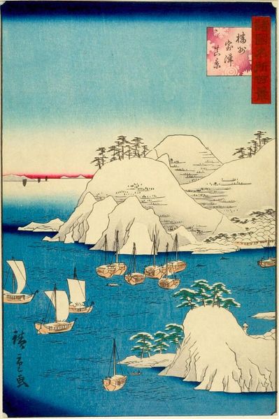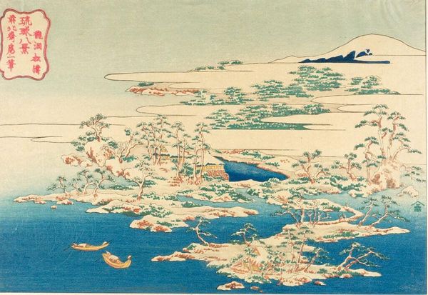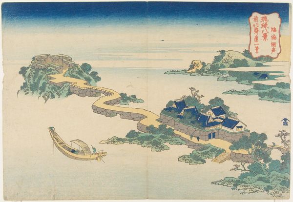 Curator: This is Katsushika Hokusai's "Famous Bridges in Various Provinces, Seeshu Ajikawa Guchi Tempozan-Osaka." Editor: It strikes me as a rather industrious landscape, busy with small figures scaling the hillside. Curator: The composition is skillfully constructed, guiding the eye along the winding path and through the carefully placed bridges. The color palette is also rather striking. Editor: Absolutely. The materials used in ukiyo-e, the woodblocks and inks, allowed for mass production, bringing landscapes to a wider audience. What labor went into carving each block? Curator: Precisely! The careful registration of each color block results in clean lines and flat planes of color, reinforcing the graphic quality. Editor: Knowing these were made for popular consumption adds a layer of social meaning—bridging not just landscapes, but also classes. Curator: A fascinating intersection of form and function, truly. Editor: Indeed, it's a testament to how art reflects and shapes society.