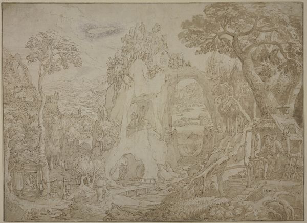 This drawing, "Allegorisk komposition," was created by Hendrik Krock using pen and brown ink with grey wash on paper. The technique has a direct bearing on the drawing’s airy, unfinished quality. Note how Krock has freely applied the wash, allowing it to pool and bleed. The composition is built up through layers of transparent strokes. Look closely, and you can see the individual marks and hatched lines that define the figures and forms. This approach emphasizes the artist's hand and the immediacy of the creative process. Drawings like this one were often preparatory studies, made in advance of larger, more finished works. They were a means for artists to explore ideas, experiment with composition, and work out details before committing to a final design. This one gives us insight into the working methods of artists of the period, and encourages us to appreciate the skill and labor involved in artistic production.