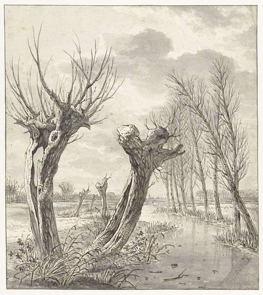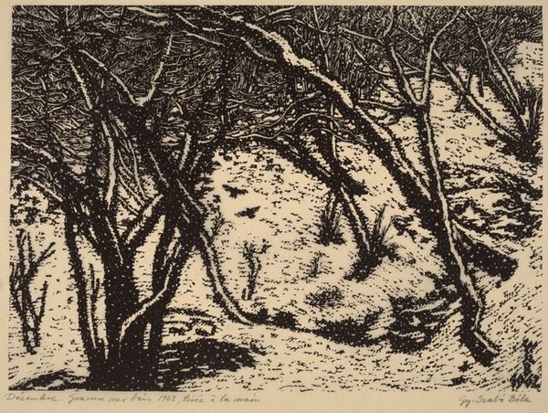 Editor: Here we have Edward Gurden Dalziel’s "Spring Flowers" from the Tate Collection. The flowers are so delicate, but the trees seem so stark. How do you interpret this contrast? Curator: The starkness is precisely the point of the composition. Observe how the linear trunks create a visual rhythm, juxtaposed with the intricate detail of the flora. The contrast serves to amplify the intrinsic qualities of both. Editor: So, the bare trees aren’t bleak, but a structural element? Curator: Precisely. Consider the interplay between light and shadow, how the artist uses line to create depth and texture. These are the formal elements that create meaning, wouldn't you agree? Editor: Yes, I see the depth now. I was too focused on the implied narrative of spring. Curator: Shifting the focus to the composition reveals a sophisticated understanding of form. Editor: It's interesting how focusing on form opens up a whole new way of seeing the work. Curator: Indeed, prioritizing the formal elements encourages viewers to engage with the artwork’s visual language.