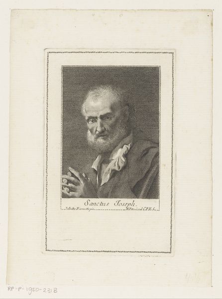 Curator: Look at this piece! It's an engraving titled "Portret van geestelijke Giovanni Marinoni"–or, "Portrait of clergyman Giovanni Marinoni"—created by Giovanni Marco Pitteri, sometime between 1712 and 1786. What grabs you first? Editor: Melancholy. Undeniably, this image breathes sorrow. He's clasping that crucifix so tightly…and the overall monochrome, aged look intensifies it. What’s more telling is the method, the clear print and cross hatching must have taken hours of dedication from the printmaker. Curator: The chiaroscuro here is beautiful; there’s such a subtle gradience in tones which is remarkable, particularly when it's etching. Look at how the light gently grazes Marinoni's face, while everything else melts softly into the shadows, emphasizing his introspective gaze. Editor: Absolutely, and thinking about the tools used–the metal plates, the acid for etching, the press to create these prints. It reminds us how deeply labor is ingrained into even these devotional images. Consider this was not fine art per se, it's not oil on canvas but one image in many that would be made from these etched metal printing plates, produced through repetitive labor and sold affordably. Curator: Indeed. It captures a complex figure in a moment of vulnerability, bridging that space between the material world and something beyond. We often reduce Baroque art to grandiosity, forgetting how much personal piety it held, that I think speaks to our material engagement too–I imagine families with modest means commissioning and treasuring these types of mass produced spiritual engravings for decades or generations as this has been treasured for. Editor: Seeing it this way – acknowledging both the delicate handiwork and the process that replicated it for wider accessibility – reshapes our understanding. Not simply as a sacred emblem, but as an outcome of industry, skill, faith, and economic dynamics merging together. Curator: Yes, in revisiting this piece I find I feel like I am left appreciating this tender glimpse into both a man and a time when making sacred was more available and in demand by everyone, everywhere. Editor: It also prompts further inquiry, like who was involved? And where and how was each element of the artistic production actually accomplished? Each line etched tells more than a story if one knows where to start.