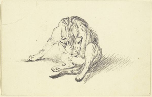 Friedrich Wilhelm Hirt captured this sleeping cat in a drawing, utilizing graphite pencil on paper. Look closely, and you'll notice the soft gradations of tone, achieved by layering the graphite with varying degrees of pressure. The physical properties of graphite, its softness and ability to leave a mark, lend themselves perfectly to capturing the cat's furry texture and relaxed form. Consider the intimacy of the process: the artist observing the cat, translating its essence through the simple act of applying pencil to paper. The deliberate and painstaking production process is evident through the attention to details, such as the cat's curled paws and the delicate shading that defines its stripes. It's a reminder that even in the most seemingly straightforward artworks, there's a depth of skill and care that transcends the materials themselves. It challenges us to appreciate the value of handmade artistry, and question the divide between craft and fine art.