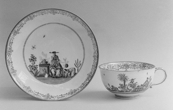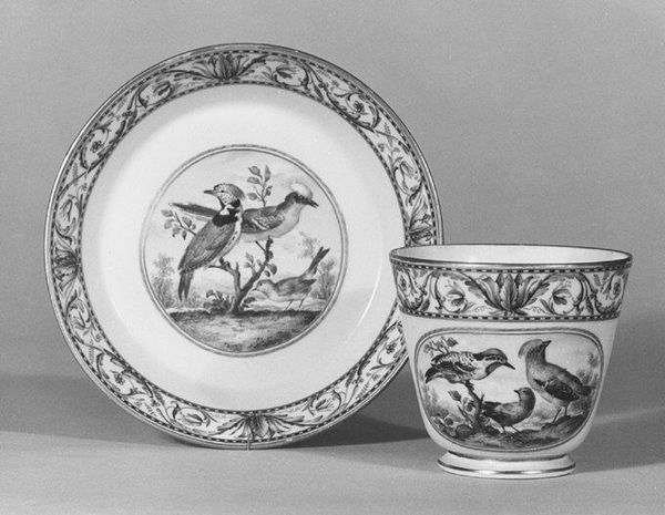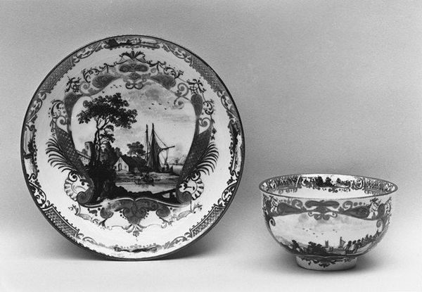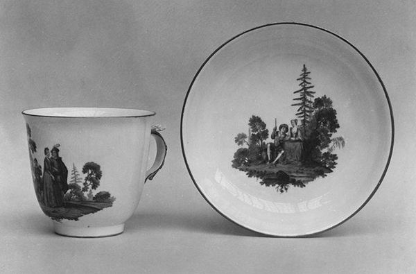 This cup and saucer were manufactured by Meissen, the first European factory to produce porcelain, sometime in the 18th century. Meissen porcelain became a status symbol across Europe, and this set speaks to the relationship between art, commerce, and social aspiration. The figures depicted in monochrome on the cup and saucer are not members of the aristocracy, but instead represent the pastoral fantasy that was so fashionable at the time. The rural idyll was a frequent theme of paintings and decorative arts objects in the eighteenth century, providing relief from the formality of court life. To truly understand this object, it would be helpful to examine the Meissen factory’s records and pattern books. These kinds of archival materials provide valuable insight into the aspirations and the market forces that shaped artistic production in the 1700s.