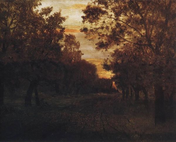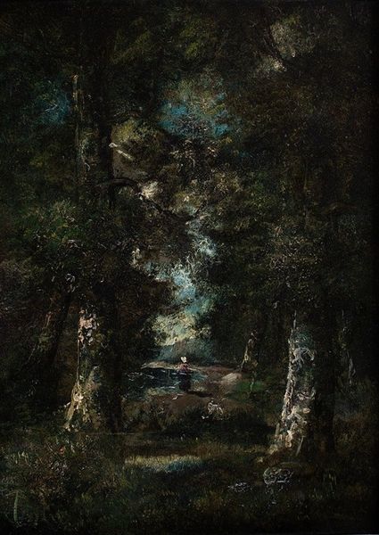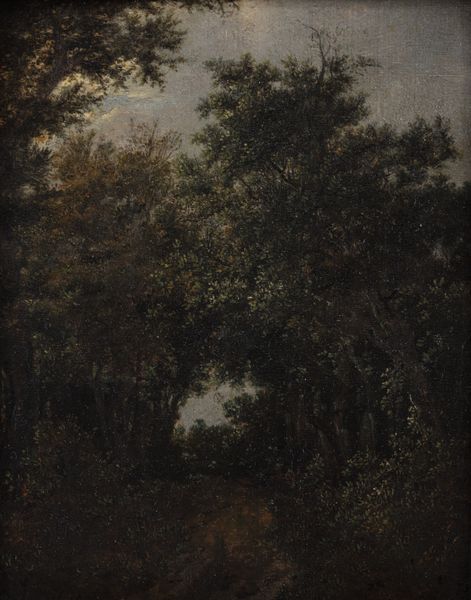 Jean-Honoré Fragonard’s "A Shaded Avenue" captures a scene of leisure through dynamic brushwork and contrasting light. The composition is structured by the dark, arching trees that frame a distant, glowing pathway, immediately drawing the eye into the painting's depths. Fragonard uses a limited palette, mostly dark greens and browns, to create a sense of intimacy and seclusion. The light at the end of the avenue, however, disrupts this stillness, offering a glimpse into the pictorial space. This interplay of light and shadow creates an atmosphere of transient reverie, typical of Rococo aesthetics. Fragonard's loose brushstrokes and asymmetrical composition challenge the rigid formality of earlier academic painting. The lack of clear narrative focus shifts attention to the pure visual experience, opening the work to multiple interpretations. It invites us to ponder the changing values and artistic freedoms that defined his era.