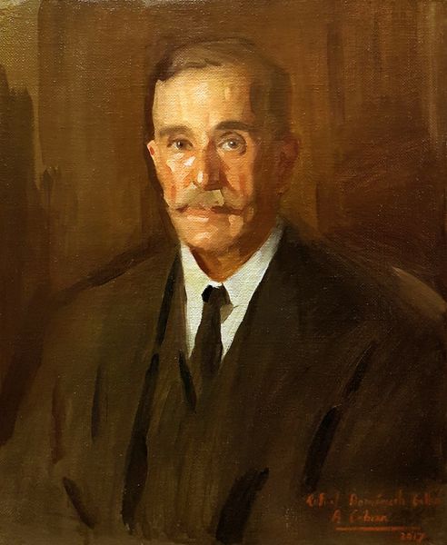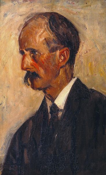 Georgi Mashev painted this portrait of Doctor Nikola Lambrev with oil on canvas. Mashev, who lived through tumultuous times in Bulgaria, including the Balkan Wars and both World Wars, captures something of the quiet dignity of his sitter, a fellow professional. The portrait presents Lambrev in a conventional pose, suited, and looking directly at the viewer. Yet, despite the trappings of professional life, there's an intimacy suggested here. The soft brushstrokes and muted palette create an atmosphere of contemplation and reflection. Lambrev holds a coin in his hand, a subtle detail that could allude to his profession and the economic realities of practicing medicine in the early 20th century, or perhaps a more personal story. Mashev offers us not just a likeness, but an invitation to consider the personal and professional life of an individual set against the backdrop of a rapidly changing world.