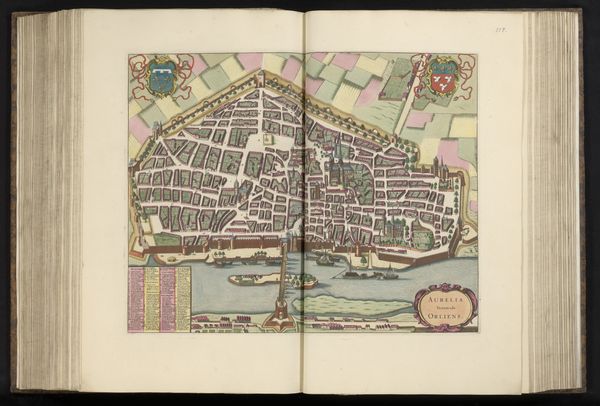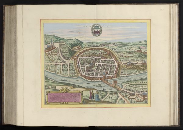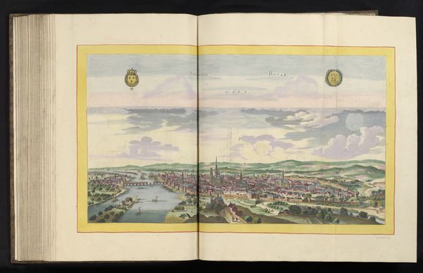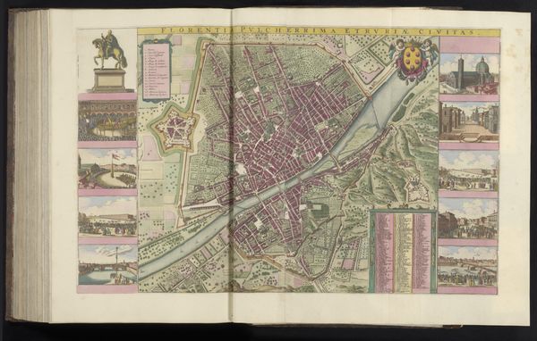 Curator: Welcome! Here we have a marvelous bird’s-eye view of Paris from 1655, entitled "Gezicht op Parijs in vogelvluchtperspectief, 1620". It was rendered by Matthäus Merian, through engraving and etching. Editor: It's striking how clearly defined the city is within its walls. A beautiful cage, isn't it? What really stands out is the density; look at the river threading its way between it all, industry and society all jammed together. Curator: Indeed! These cityscapes gained popularity because of the growing urban centers in Europe and this particular example showcases Paris as a political and cultural center. The meticulous rendering reflects not just the physical layout but also the era's ambitions for urban planning and control. Editor: Ambitions built on labor! Each building, each street signifies the toil of artisans and builders. It's fascinating how this printed image, multiplied and distributed, is itself a product of intensive labour in Merian’s workshop. And consider the materiality of the printing process itself, the ink, the paper, the press—each element carrying its own social and economic history. Curator: Precisely. The print also highlights how powerful imagery was becoming a means of constructing identity—in this case, a carefully designed projection of Parisian grandeur circulated throughout Europe. Think of it as early municipal PR. Editor: PR spun from sweat, stone, and the guts of animals. Look closer and you see those details are there too - those little boats probably show materials coming to build these great structures. The engraver had to render the scene to get the look, yet without these people and things nothing else could be achieved. Curator: Absolutely. It makes you consider what the consumption of the print signified too - how a growing bourgeoisie audience would relate to depictions of urbanity in ways that expressed, confirmed or denied their position. Editor: True. And now we can visit this very place ourselves! It's grounding, seeing where things started and also being present at where things are today - perhaps we're constructing something new just by talking about it? Curator: It certainly enriches our understanding.