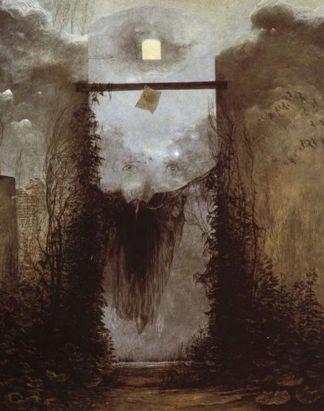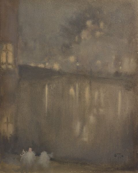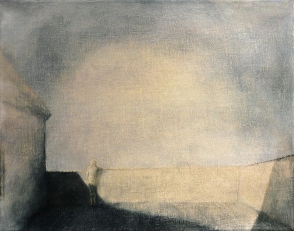 Curator: Mikalojus Konstantinas Ciurlionis painted "Night" in 1905, an oil painting which demonstrates the artist’s move towards symbolism and abstraction within a landscape setting. It marks a pivotal moment in early 20th-century art, as artists began exploring subjective experience over objective representation. Editor: My initial impression is one of muted tranquility. It's as if I'm peering into a secret world, cloaked in shadow and silence, with just a sliver of spectral light breaking through. The vertical emphasis is powerful. Curator: Precisely! The almost dreamlike quality speaks volumes about Ciurlionis's broader artistic project. Consider how he blended his musical background with visual art. He aimed for synesthesia— a unification of the senses through art. Nightscapes provided the ideal mood for him to achieve it. Editor: It is indeed quite sensory! I am wondering though if his art had some intersectional meaning... Maybe how society views those experiencing 'night' like those in crisis, working night shifts. Did Ciurlionis aim to highlight societal challenges or inequalities of his era in pieces like this one? Curator: That's an intriguing question, and while there’s no explicit socio-political critique documented in Ciurlionis's statements, you're right, the late 19th and early 20th centuries witnessed intense social and political upheaval. It would be impossible to consider these artworks outside this history. "Night" reflects a growing intellectual fascination with spiritualism, theosophy and inner consciousness during the Russian Empire. Ciurlionis felt compelled to address the anxieties of human condition. Editor: His ethereal technique captures this anxious yearning so powerfully, which really allows the image to resonate emotionally and intellectually across decades and political eras. Curator: Absolutely. Ciurlionis's pioneering synthesis of music and painting reshaped the trajectory of European art and remains strikingly potent today, reminding us of the fluidity of visual art's public role. Editor: Examining his painting through a contemporary lens encourages us to reflect on the power structures within the art world and to interrogate whose stories are told. Ciurlionis has surely passed, but his ability to open narratives with only shades still affects how his work shapes today’s critical art theory.