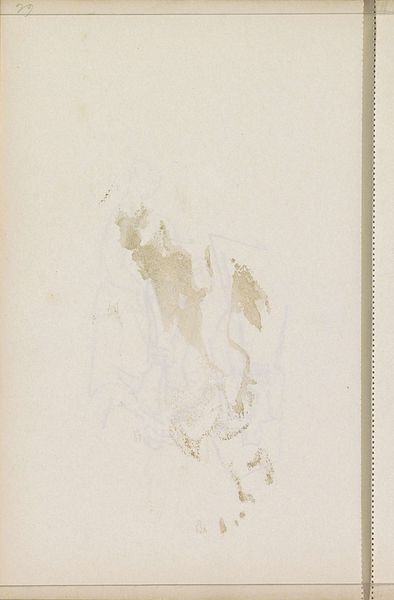 Curator: This is an untitled print by Gabriel Orozco, acquired by the Tate. Its dimensions are 200 by 165 millimeters. What strikes you first? Editor: It feels ethereal, like a fading memory captured in shades of sepia. The composition is so subtle, almost like an accidental stain. Curator: Orozco often incorporates chance and everyday materials. The process might involve allowing natural elements to interact with the paper, a collaboration between the artist and circumstance. Editor: The texture invites close inspection. The interplay between the speckled dark spots and the smooth surface creates a fascinating contrast. Curator: Exactly. By using such commonplace processes, Orozco challenges our notions of artistic skill and the value of traditional techniques. It reframes the definition of labor in art. Editor: I agree. It's less about a deliberate construction and more about revealing an image through process. It's very subtle and very clever. Curator: Indeed, both humble and profound, wouldn't you say? Editor: Precisely. It gives you a lot to consider.