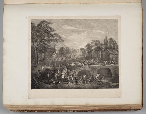 Editor: This is "The Country People's Revenge" by Bernard Baron. It looks like an engraving. It's quite chaotic, bodies and horses all over the place. What does this scene tell us about its time? Curator: It speaks volumes about power dynamics and social unrest. Prints like these, widely distributed, shaped public opinion. Notice the villagers attacking soldiers. How does this challenge established hierarchies? Editor: It's like the common folk taking back control. Was this a popular theme in art then? Curator: Absolutely. Consider the rise of the middle class and Enlightenment ideals. Images of rebellion fed into and reflected a growing desire for social change and challenged the aristocratic norms. Editor: I see it now. The print isn't just a scene; it's a statement! Curator: Precisely, it actively participates in the socio-political discourse of its time.