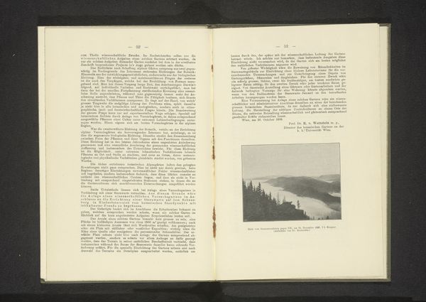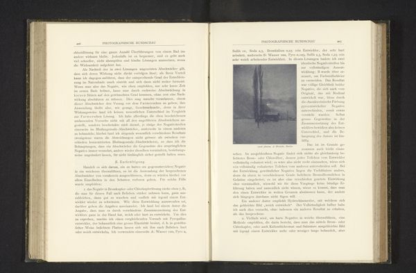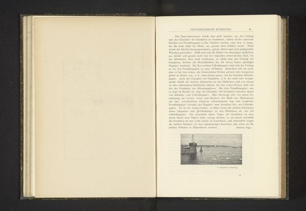 Curator: So, we're looking at "Winterlandschap" – it's actually a photograph reproduced in a book from before 1899. I find it interesting how photography at this time was vying for acceptance as a legitimate art form, hence being showcased within the pages of a book celebrating artistic achievements. Editor: My first thought is how minimal the composition is, almost monochromatic. The snow-covered ground blends seamlessly into the sky; it feels bleak and quite serene all at once. It really speaks to the inherent beauty of such landscapes. Curator: Indeed. Considering this photograph was presented within a publication, it makes you wonder about the audience and the prevailing aesthetic tastes. Was it meant to evoke a romantic vision of the Dutch landscape, or to document the harsh realities of winter life? I'd argue it reflects an ongoing need for representations that elevate the 'common' to the realm of fine art. Editor: For me, what stands out is the artist's mastery of light and shadow. Look at the subtle gradations across the snow, those faint tracks, possibly human or animal—they ground the vastness of the scene. There's a compelling tension created by this juxtaposition of form against open space, light, and its absence. Curator: It would be interesting to see where this publication circulated, as that would give us insight to the photographic traditions it's trying to promote. There are likely other artists working at the time in parallel, working to use photography as a documentary means to communicate particular events. Editor: The photographer makes an amazing visual impact, really bringing home this cold sense of what winter represents. It is the balance between formal considerations of light and form as the foundation and what it signifies in cultural experience, really creating a piece of impact here.