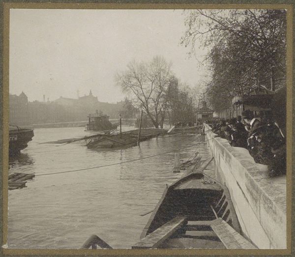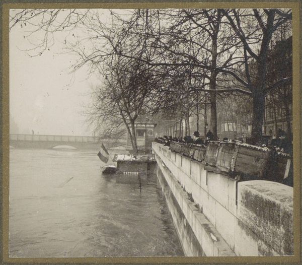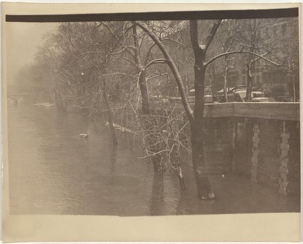 Editor: This is Eugène Atget’s "Pont Neuf," taken in 1925. It's a photograph, and it really captures a certain mood, doesn’t it? There’s a melancholy, almost ghostly quality to the light. What do you see in this piece that maybe I'm missing? Curator: Ah, Atget! A fellow wanderer, in his own right! This isn't just a photo; it's a memory caught in amber. See how the sepia tones soften everything? It’s like Paris itself is whispering a secret. I think of flaneurs strolling along, caught between presence and absence in that particular city. Do you feel it, the presence of that time? Editor: I can almost hear the clip-clop of horse-drawn carriages! The bare trees against the Seine really emphasize the stillness. But, it feels almost staged, doesn't it? Like a movie set. Curator: Staged, maybe in the sense that all photographs capture a chosen perspective and precise moment, and this evokes the painterly traditions of pictorialism. Notice the soft focus and the way the light diffuses…it reminds you of the Romantic landscapes, a careful rendering of the "real". And yes, there’s a timeless quality – like we are peeking into a different dimension where time is elastic. But, that's also what street photography offers. Editor: That makes a lot of sense. It really opens my eyes to a whole different way of looking at it! Thank you. Curator: Anytime! Each photograph holds its own magic, you know? Keep wandering and feeling and I am sure you'll unveil countless stories from these still frames!