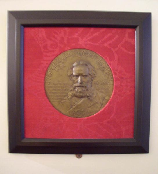 Editor: Here we have Charles Calverley's bronze relief of James Russell Lowell. I am struck by the gravitas it carries, with the inscription circling Lowell's stern profile. What statement do you believe it's making? Curator: It's a fascinating piece of institutional memory. Consider the function of portraiture, particularly in academic settings. It immortalizes figures deemed significant to the institution's history and values. Editor: So, it's less about Lowell the man, and more about Lowell the symbol? Curator: Precisely. How is Lowell presented? What qualities are being emphasized to the viewer, and what does that say about Harvard's values at the time this piece was commissioned? Editor: That’s a different way of seeing it. I was too focused on the likeness itself. Thanks!